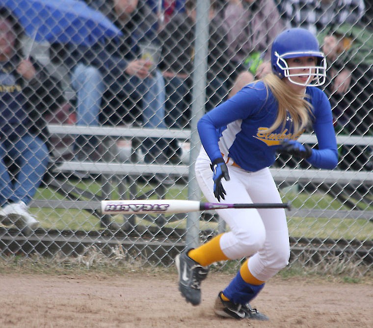 Erica Sorlie connects with the ball for the Thompson Falls Lady Hawks. Thompson lost to Plains after 5 innings.