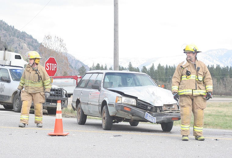 A two-vehicle accident occurred at the intersection of Highway 200 and Highway 135 near Paradise around 5 p.m. on Monday. A semi-trailer collided with a late model, light blue Subaru wagon while attempting a left turn heading south on Highway 135.