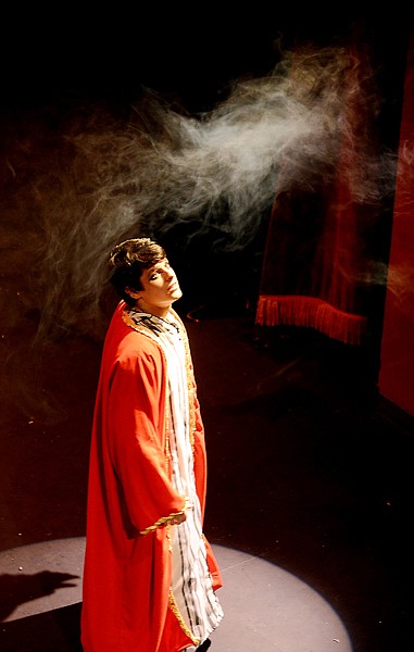 Travis Hearn as Moses in the scene following seeing God in the burning bush during the dress rehearsal of the seventh annual home school play on Thursday, April 11, at the Whitefish Performing Arts Center. This year 56 home school students will be performing the Prince of Egypt. The last two shows are today at 2 p.m. and 7 p.m. The shows are free with donations accepted. There will also be a bake sale in the lobby during intermission. (Brenda Ahearn/Daily Inter Lake)
