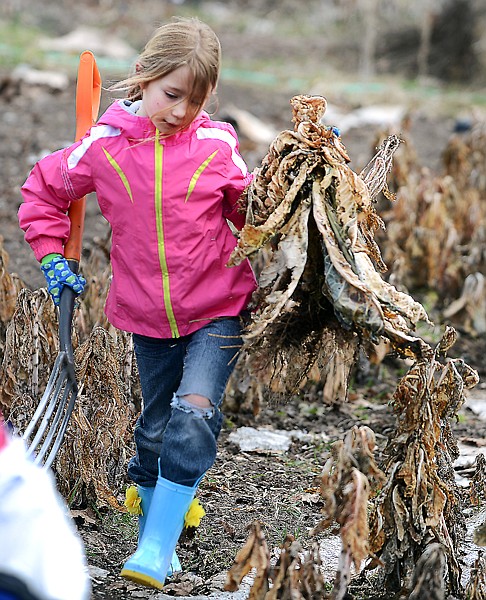 Lizzy Johnson, 10, a member of a junior Girl Scout troop from Columbia Falls, said digging up the artichokes was the best part of the day for her.
