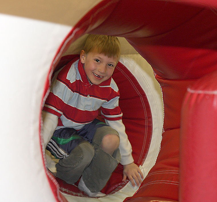 First grader Aiden Rich maneuvers his way through the obstacle course, which the National Guard set up at the Plains High School on Wednesday, April 10.