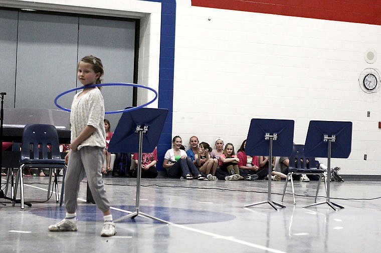 Superior Elementary second grader Payton Milender showcases her skill at the hula hoop during the talent show on Tuesday.