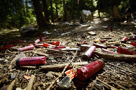 "It's like (whizzin') in the wind," he said, pointing out a half-dozen littered shooting ranges that have cropped up within the first couple of miles along Hayden Creek Road. "The more you (whizz), the more you get flying right back at you."