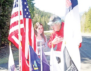 Chuck Lewis, a U.S. Marine sergeant from 1970 until 1974, is walking from Everett, Wash., to The Vietnam War Memorial in Washington, D.C. Lewis, who spent Monday evening in Libby, began his walk on Easter Sunday, and he expects to wrap up the trek in late September. En route to Libby on Monday, Lewis talked to Alizabeth VanWorner who lives just west of Libby. She waited for Lewis to approach on Highway 2, recalling her grandfather’s service in the Marines.