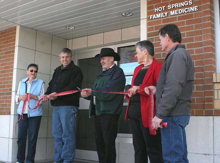 The Eastern Sanders county Hospital District Board cuts the ribbon during the grand opening of the Hot Springs Clinic.
