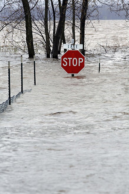 By Tuesday afternoon, as a chilly rain continued falling, the river had rolled over the park and made it to Reatherford's home, creating a 3-foot-deep mess in the basement. Reatherford had cleared out the basement furniture and was hopeful the main floor would stay dry.
