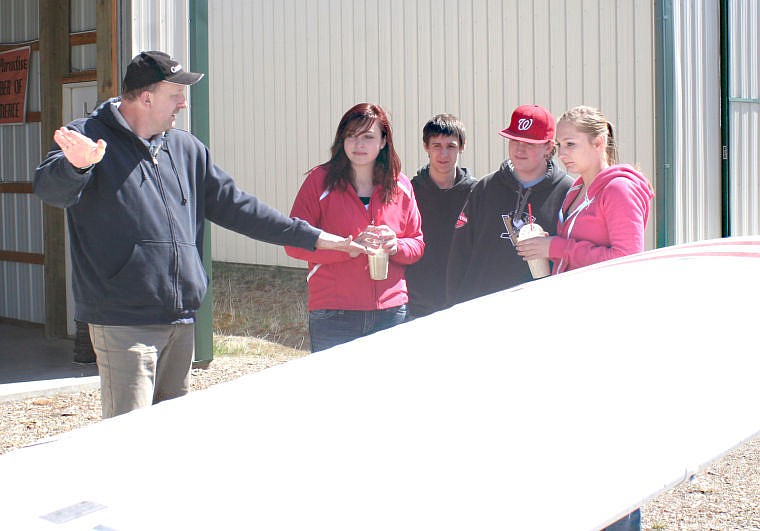 Plains High School science teacher Carl Benson demonstrates aviation physics to from left to right: Jessica Hansen, James Wade, Aaron Balantine and Ashley Holmes.
