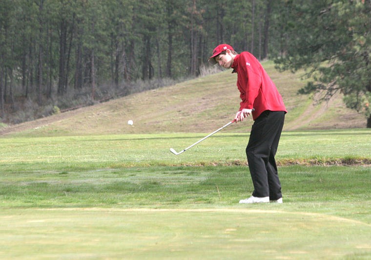 Dallas Burgess chips the ball onto the green on Saturday during the Plains Invitational. He finished the day with a score of 75.