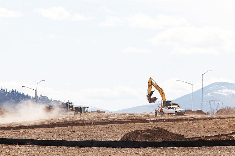 Heavy equipment moves dirt at the future location of the Glacier Eye Clinic on Friday afternoon near Reserve Loop east of Glacier High School. The new clinic is planned to be 22,000 square feet. April 26, 2013 in Kalispell, Montana. (Patrick Cote/Daily Inter Lake)