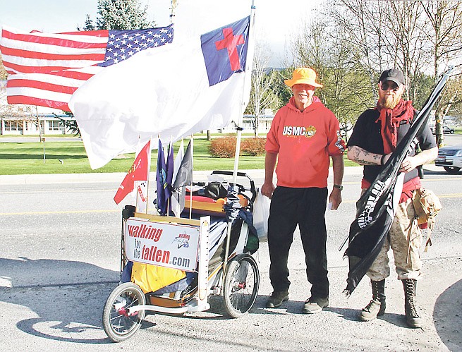 BONNERS FERRY — People honked their car horns and waved as Sgt. Chuck Lewis pushed his flag-decorated cart through Boundary County on Friday and Saturday.