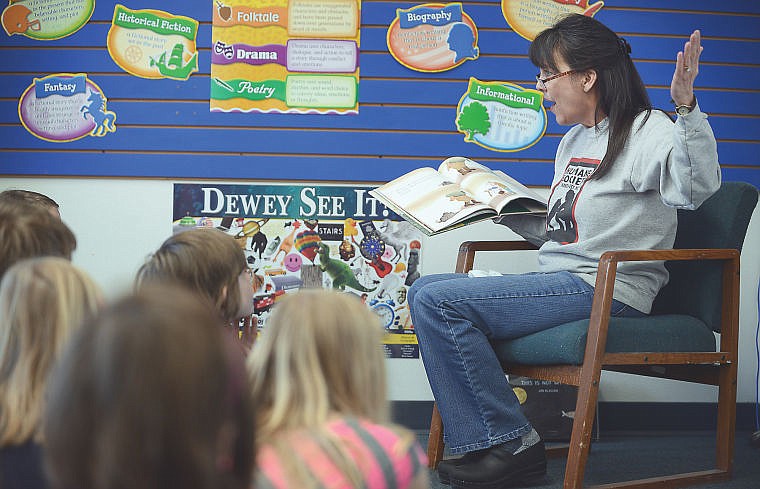 Heatherington read “Stray Dog,” by Marc Simont to a group of third-graders. As Heatherington turned the pages, she related the story about a family that encounters a stray dog with no leash or collar while picnicking.