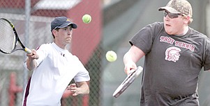 The Trojan doubles team of Gunner Jordan and Austin Duve defeated Mission's Nate Doll and Jamie Mullins at No. 1 doubles Friday 6-2, 6-2.