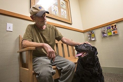 COEUR d'ALENE - Larry Greenfelder lovingly caressed his dog's head and neck as the veterinarian examined her. The Vietnam veteran exchanged glances with his 8-year-old black lab Boo Boo, reassuring her that Dr. Bruce King was not going to take the rawhide she refused to release from her teeth.