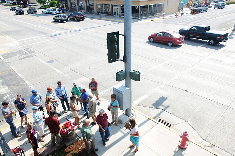 Jennifer Young, lower right, leads a tour of downtown Kalispell on Wednesday afternoon to assess the walkability of the streets. July 31, 2013 in Kalispell, Montana. (Patrick Cote/Daily Inter Lake)