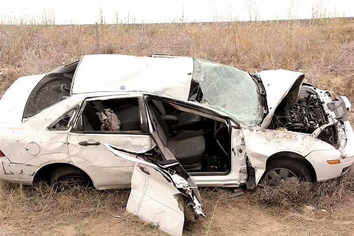 ADAMS COUNTY - Vehicle parts remained scattered down a ditch Wednesday afternoon where five people were injured after their vehicle rolled off of Interstate 90, about 20 miles west of Ritzville.