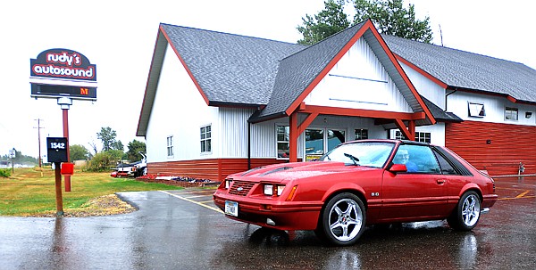 Jeff Howlett of Kalispell, with his 1984 Mustang, takes part in the Sweet Wheels & Rod Run at Rudy's Autosound. The event was hosted by the Evergreen Chamber of Commerce.