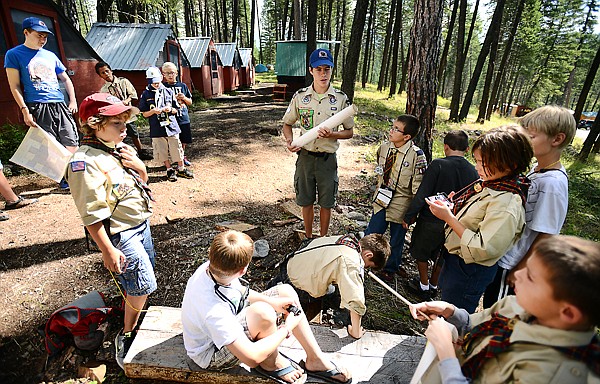 Eagle Scout Danny Quinones, 17, of Helena, leads a maps and compass course for a group of Webelos as part of session three of the Webelos Residence Camp on Aug. 5 at Grizzly Base Camp near Bigfork. In the three sessions nearly 150 kids and more than 75 adults have taken part in activities that include swimming, shooting BB guns, learning archery, studying nature and more. The activities offer Scouts the opportunity to advance by earning belt loops and pins.