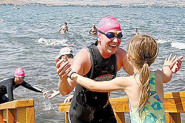 POLSON —“The distance is exactly from here to there,” Matt Seeley said as he introduced the 1.1-mile swim course spanning from the KwaTaqNuk resort to Boettcher Park on Saturday, Aug. 3.
