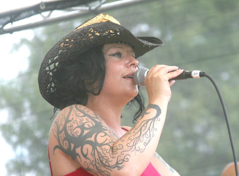 Michelle Taylor takes the microphone as she plays with her band the Blues Junkies. The band came to the Blues Festival from Seattle.