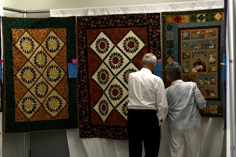 Visitors to the Cabin Fever Quilt Guild show examine some of this year's entries.