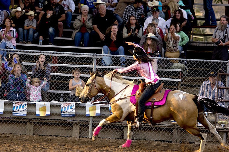 Lions Club Rodeo Queen Ashley Blaylock does a lap around the arena.