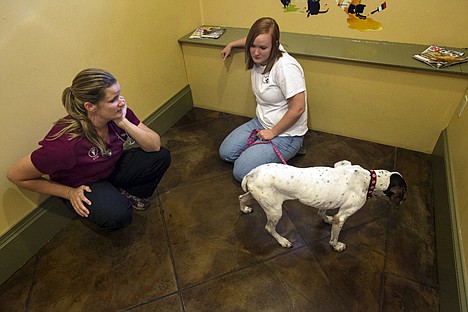 Jolley brought the dog, Hope, to visit the veterinarian, Dr. Amoreena Sijan at Lake City Pet Hospital in Coeur d'Alene, on Friday.