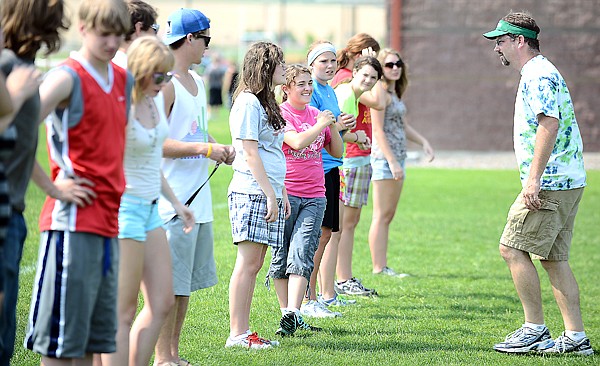 David Barr leads students in day one of band camp on Monday, August 12, at Glacier High School. (Brenda Ahearn/Daily Inter Lake)