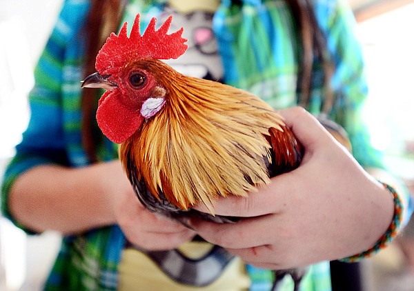 A Dutch bantam rooster belonging to Sarah Johnson was the hands-down winner at the Rooster Crowing contest on Wednesday afternoon at the Northwest Montana Fair in Kalispell.