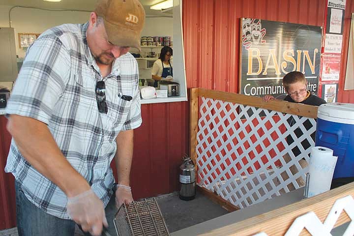 The Basin Community Theatre also had volunteers show up Monday to prepare their food booth for the first-day rush. Kyle Noyes said this is the second year the group has been at the Grant County Fair.