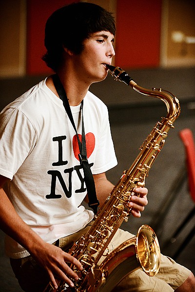 Carson Cantrell, a soon to be junior, plays the sax on Wednesday afternoon, August 14, at the Bigfork High School. Cantrell will be taking part in this year's Macy's Day Parade. (Brenda Ahearn/Daily Inter Lake)