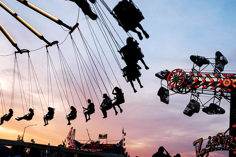 Carnival attendees enjoy rides such as the YoYo, left, and the Zipper, right, Wednesday night at the Northwest Montana Fair at the Flathead County Fairgrounds.