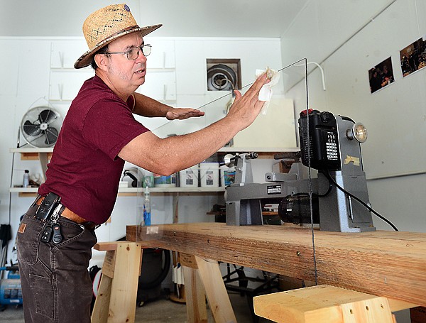 Richard Galloway of the Glacier Woodturners prepares the booth for the Northwest Montana Fair on Thursday, August 15, in Kalispell. (Brenda Ahearn/Daily Inter Lake)