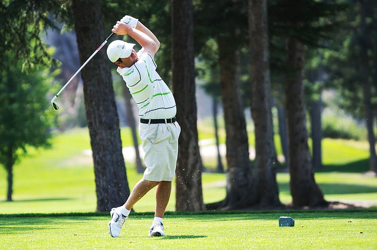 Doni Walter of Kalispell watches his shot off the 14th tee box Thursday afternoon at Buffalo Hill Golf Club during the opening round of the State Mid-Am Golf Tournament. Aug. 15, 2013 in Kalispell, Montana. (Patrick Cote/Daily Inter Lake)