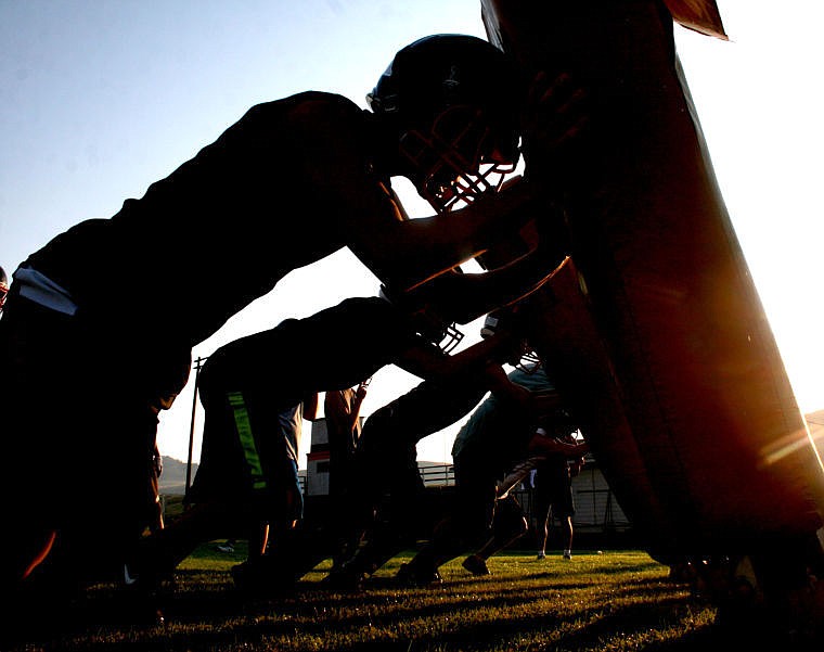The Plains Horsemen hit the sled during their first practice of the season Friday morning.