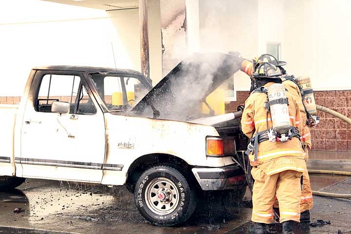 Moses Lake firefighters responded and were able to extinguish the fire, prying open the hood of the older model Ford pickup truck.
