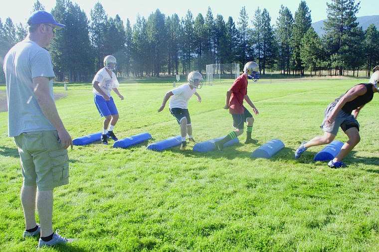 The Thompson Falls Bluehawks run agility drills during practice. The team is preparing for the first game of the year against Plains on August 31st.