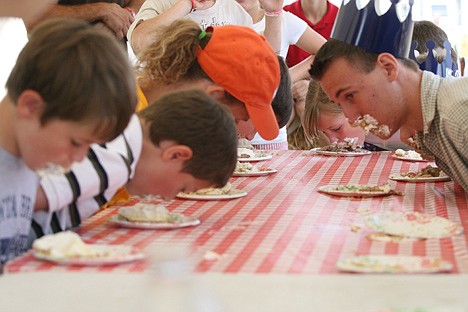 Three pie-eating contests took place Sunday morning at the North Midway of the Kootenai County Fairgrounds during the North Idaho Fair and Rodeo, with about 12 participants per competition.