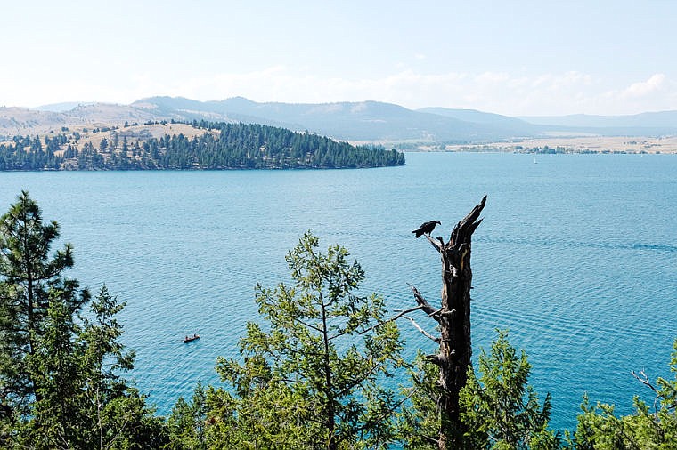 Flathead Lake is seen in the background as a turkey vulture perches atop a tree Saturday afternoon on Wild Horse Island. Aug. 24, 2013 in Kalispell, Montana. (Patrick Cote/Daily Inter Lake)