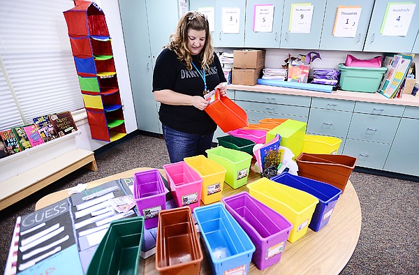 Bethany Knudsen, a fourth-grade teacher at Kila School, organizes her classroom on Tuesday. “There is the big picture, that I worked on over the summer, but there are also the smaller details. When the kids come back, they know if you haven’t got the details taken care of,” Knudsen said as she put individual name tags on personalized mail slots. Knudsen is looking forward to the start of school on Sept. 3. “The first days are all about atmosphere and setting expectations for the whole year,” said Knudsen.
