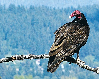 The featherless head serves the turkey vulture well when it buries its head deep into a carcass to pull out meat. Instead of needing to clean feathers, the turkey vulture allows the sun to bake any parasites or dried bits of meat off its head.