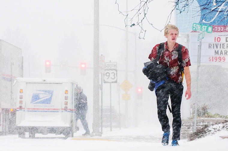 David Browning braves the cold weather Monday afternoon in downtown Kalispell. A winter storm warning has been issued for the Flathead and Mission Valleys and remains in effect until 1 a.m. on Wednesday. Dec. 2, 2013 in Kalispell, Montana. (Patrick Cote/Daily Inter Lake)