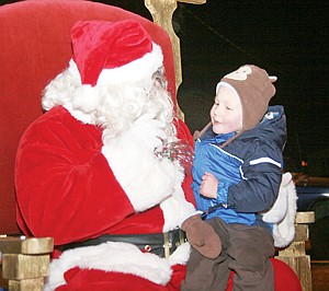 Parents and children lined clear down 2nd Street to Home Bar as they waited to visit Santa under a massive Christmas tree lit with 30 long strands of red, blue, green and orange lights.