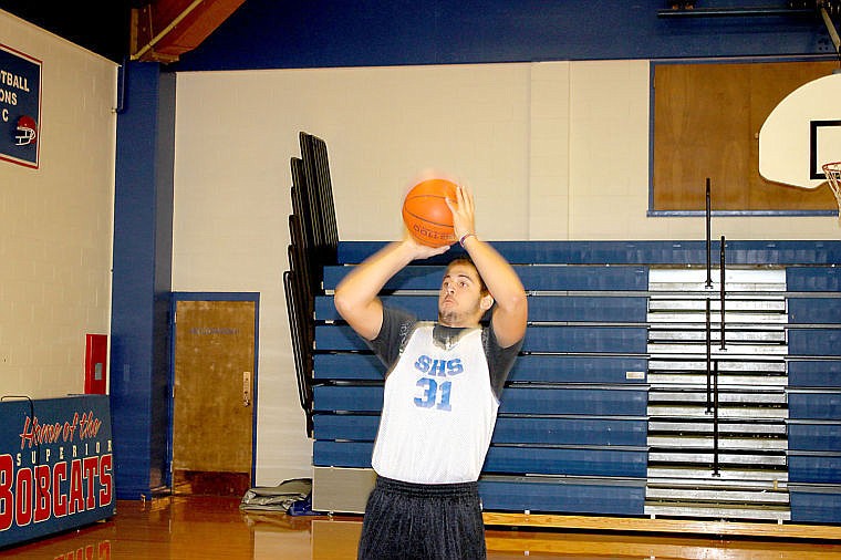 Senior Jarrod Tippens lines up a shot to the basket during a Superior Bobcats' practice session.