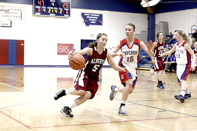 An Alberton Lady Panther dribbles around an opponent from Superior in a game last season.