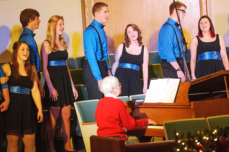The Flathead High School choir performs Thursday night at the Church of Jesus Christ of Latter-day Saints in Kalispell. The Freedom from Religion Foundation and the American Civil Liberties Union had asked the choir, as well as choirs from Glacier and Whitefish high schools, not to sing at the church's Community Christmas Celebration. School officials, however, said the choir participation was voluntary and the students’ participation does not mean the district endorses or promotes a religion or religious message. (Patrick Cote/Daily Inter Lake)