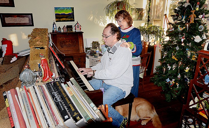Coleen Carter listens as her son Steve plays Duke Ellington's jazzy "Don't Get Around Much Anymore" at her home in Whitefish on Thursday, December 5. (Brenda Ahearn/Daily Inter Lake)