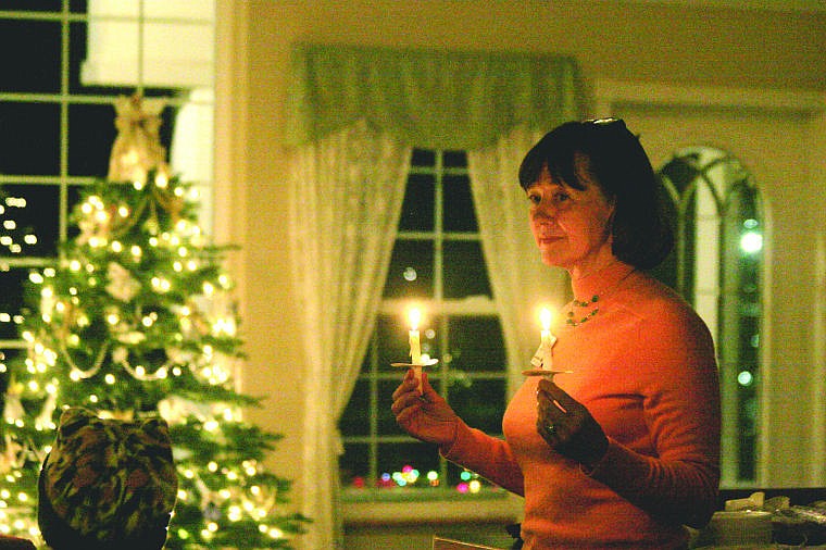 Laura Lanfear holds up candles in remembrance of those who have passed while the reading of the names takes place.
