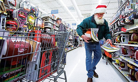 POST FALLS - A man with a big white beard and jolly red hat pushed a shopping cart full of toys for kids down the aisle at Walmart. Santa?