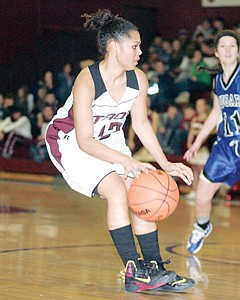 Lindsay Laws steals the ball from Kaitlyn Downey in first quarter vs. Troy, Jan. 2.