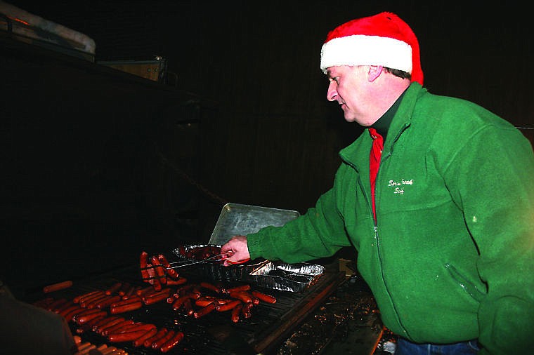 Bob Brown grills hot dogs before the parade for the Men's Prayer Breakfast group. Brown has been cooking for the event for at least ten years.